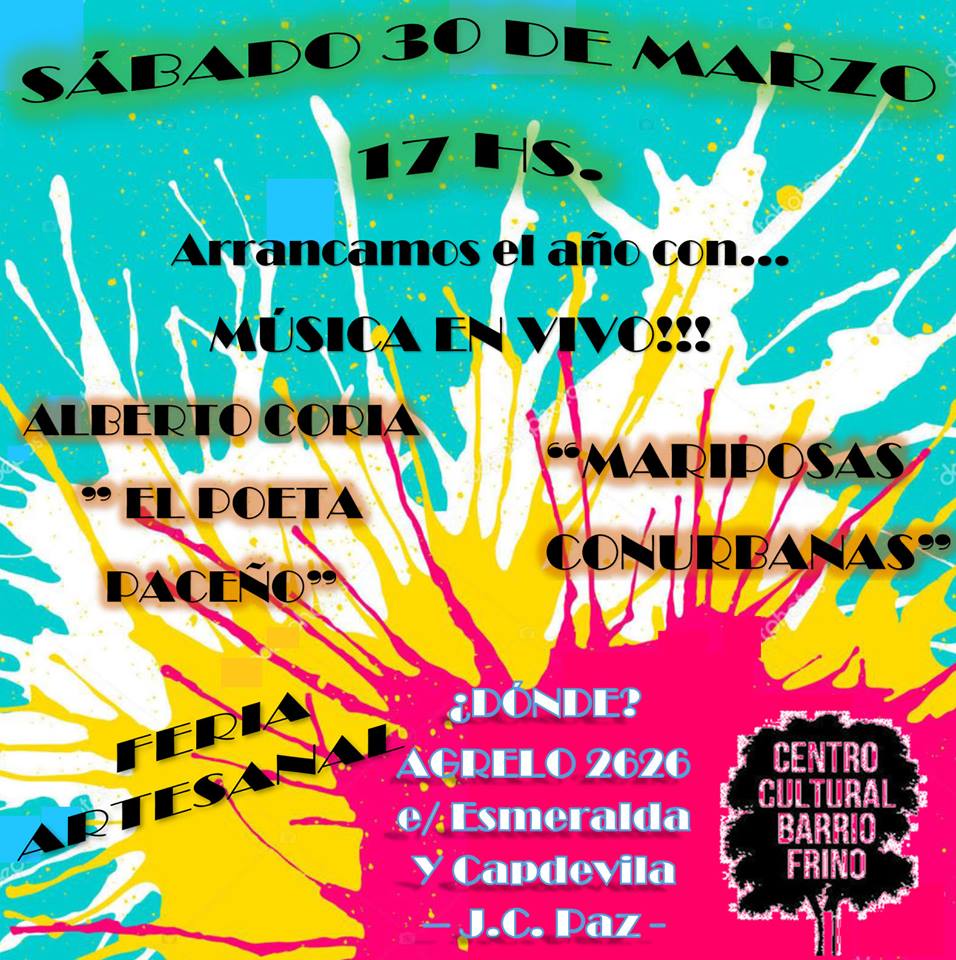 Este sábado 30 de marzo el Centro Cultural de Barrio Frino